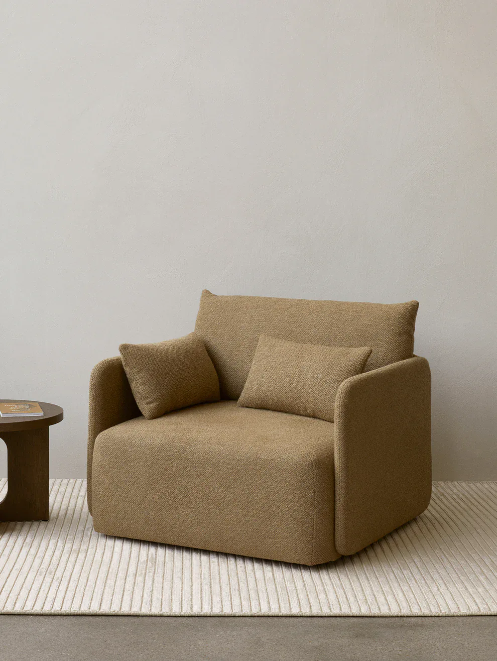 • Slim armrests that contribute to its crisp, geometric silhouette