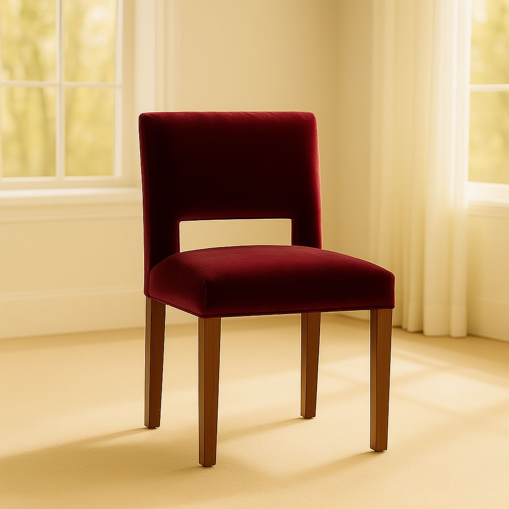 The Chalk Dining Chair is crafted with modern simplicity—clean lines, soft texture, and a sculptural silhouette that feels both refined and quietly confident. Upholstered in any choice of material or leather, the chair brings a sense of calm minimalism to any dining space. Its dark timber legs ground the design, creating a striking contrast that feels architectural and timeless. Can be stained in any other finishes too at request. The Chalk Dining Chair brings a sense of quiet luxury to the dining room. The cut‑out detail keeps the silhouette visually light, making it ideal for both compact dining areas and open‑plan living. It’s understated, elegant, and effortlessly modern Key Features