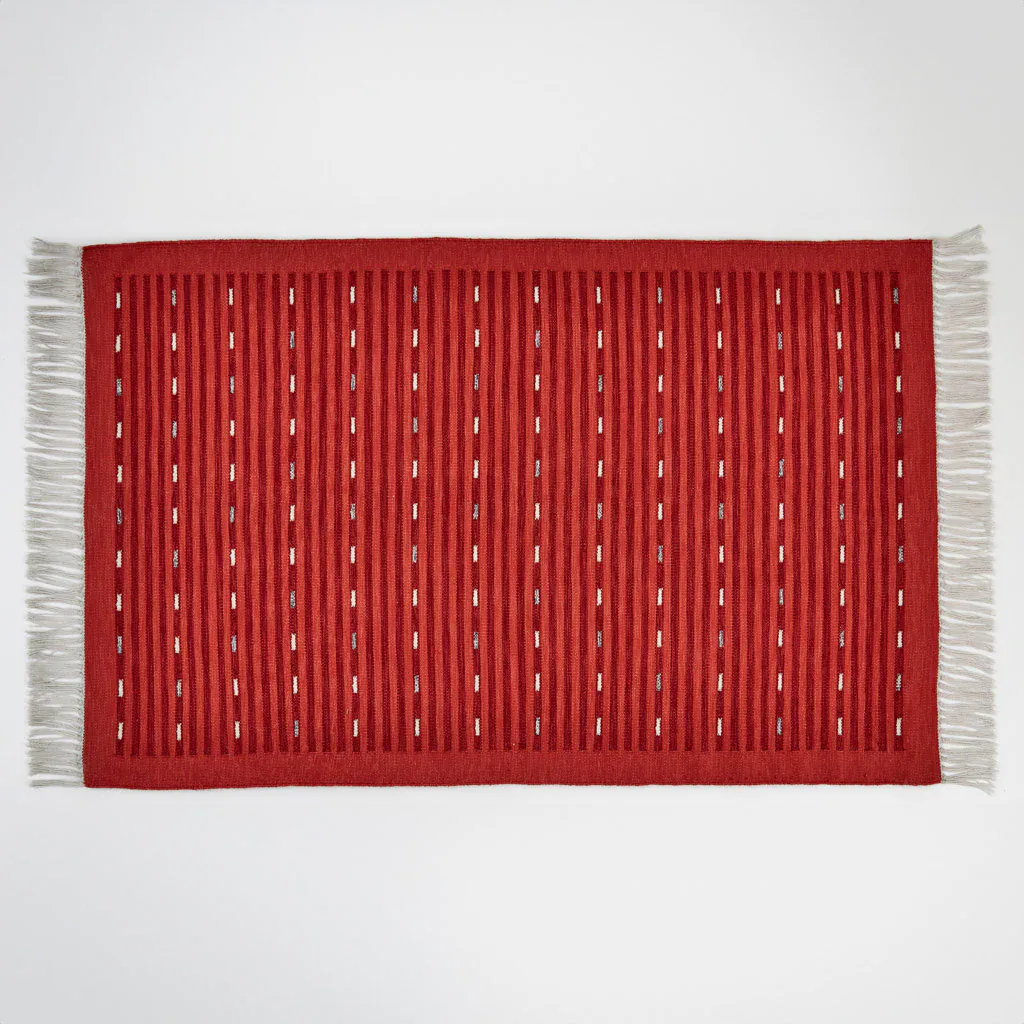 Add bold style with the Cosmo red rug, hand-loomed in durable recycled fibres. Ideal for busy homes, indoor or outdoor use, and machine washable.