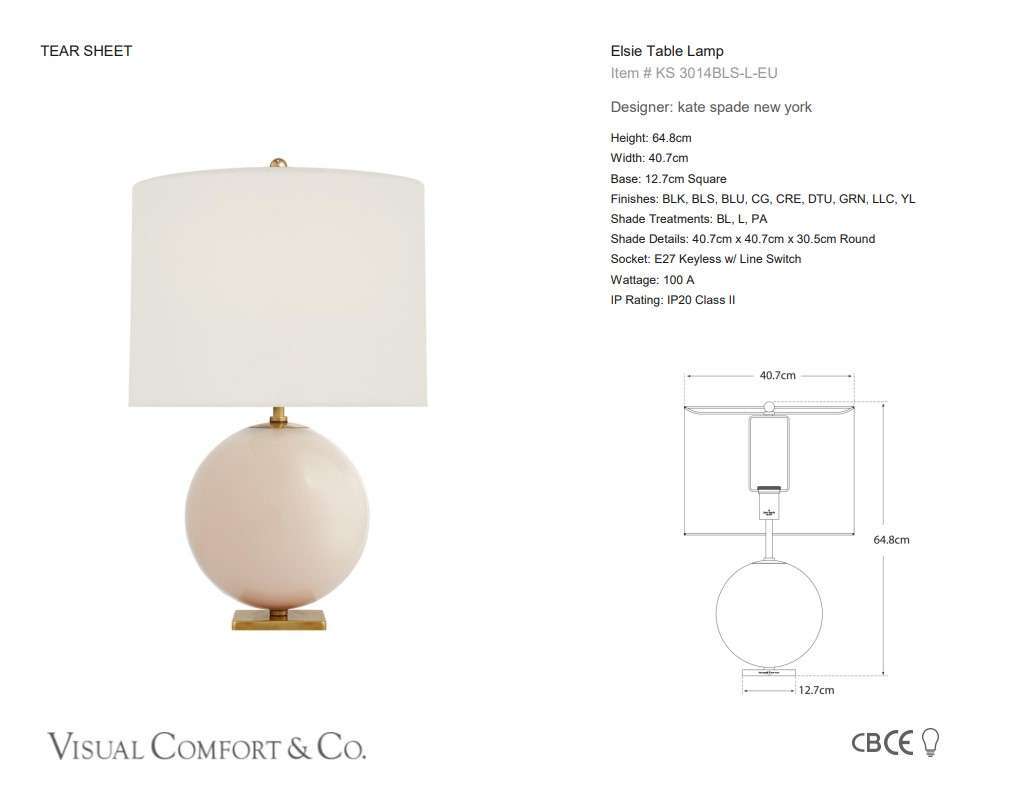 Discover the Elsie table lamp by Kate Spade for Visual Comfort, featuring a blush base & cream linen shade, crafted with premium finishes & timeless elegance.