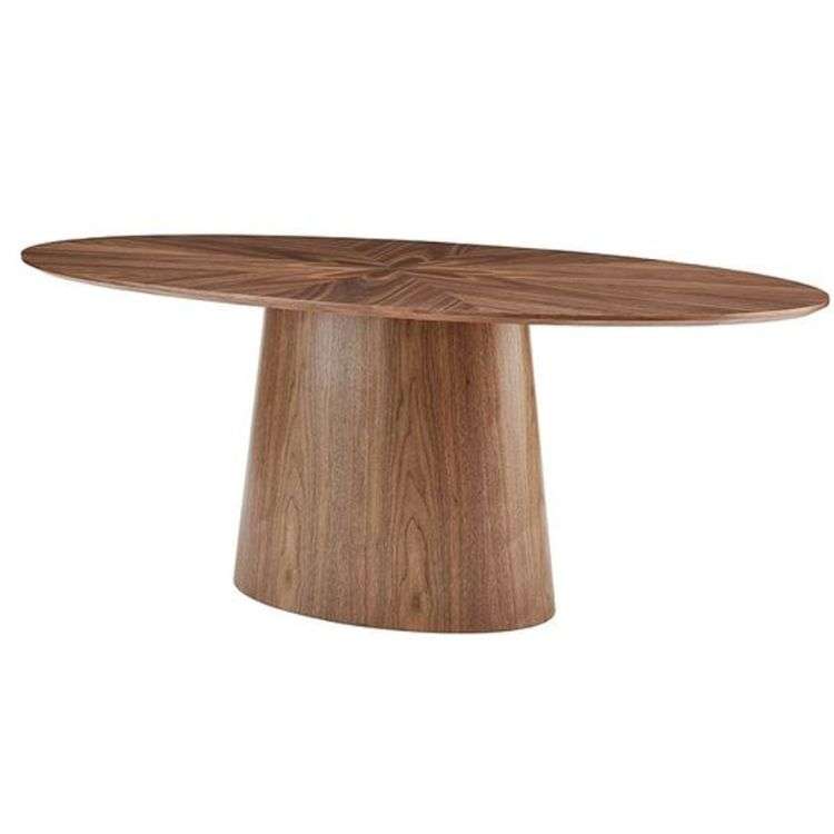 Foxnote Elliptical dining table in walnut with starburst top, a luxurious centrepiece for elegant homes and exclusive restaurants. Fully customisable.