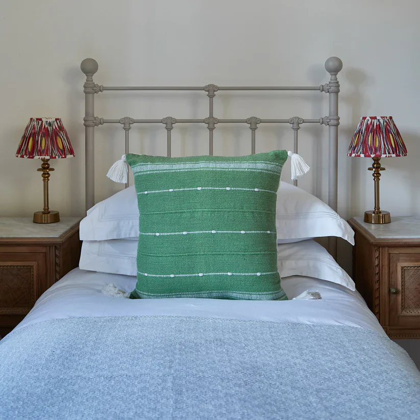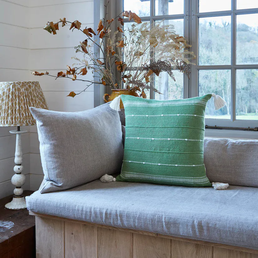 Add charm with the Green Tassel Cushion, hand-loomed from recycled plastic. Soft, stain-resistant and perfect for indoor or outdoor living.