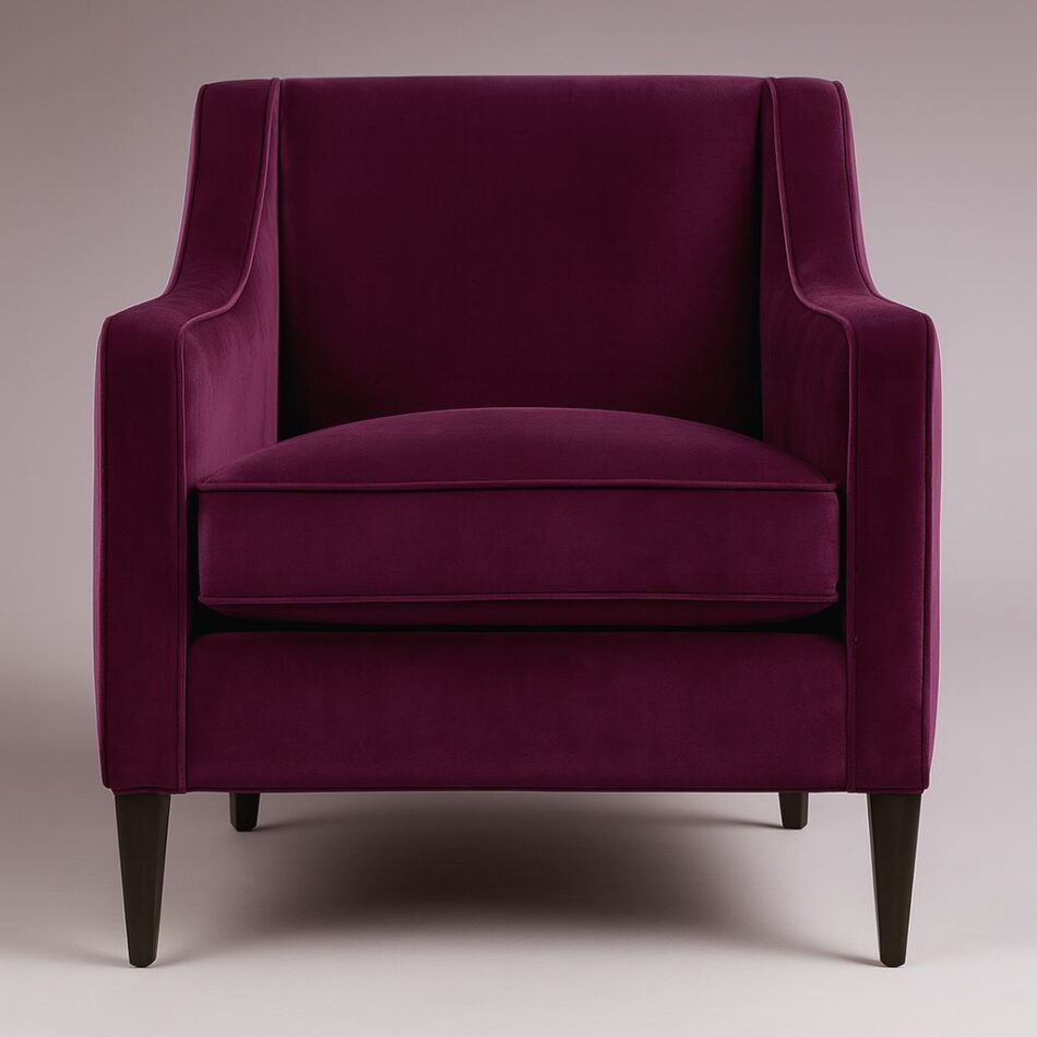 Discover the Hawes armchair, a sleek velvet design with tapered timber legs and flared arms—perfect for refined, contemporary interiors.