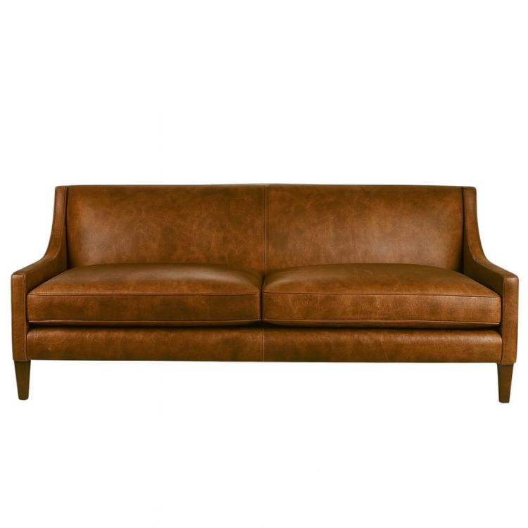 Discover the Hawes sofa: sleek leather upholstery, flared arms and tapered timber legs for refined, mid‑century inspired comfort in any contemporary space.