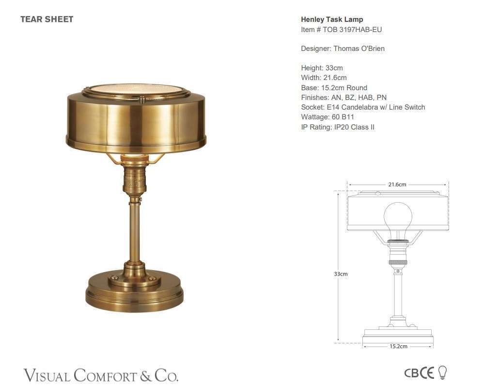 Henley Task lamp in hand-rubbed antique brass.