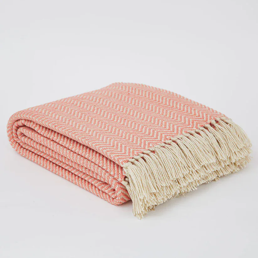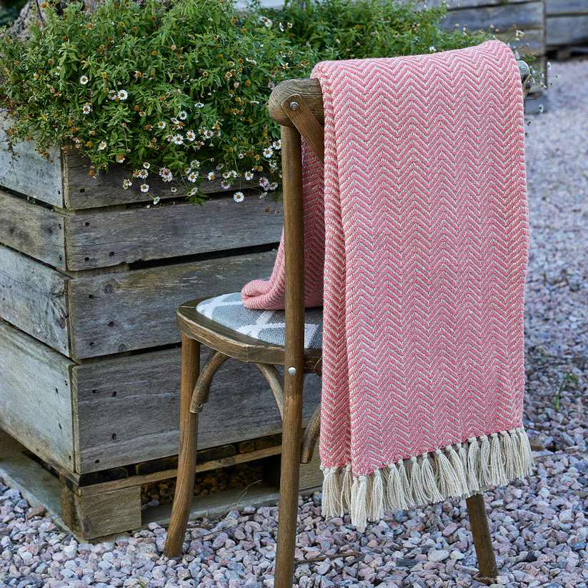 Our fabulous herringbone coral blankets are made from up to 300 recycled plastic bottles. As soft and cosy as wool, they’re stain-resistant, easy to clean and perfect for throwing over beds, sofas and outdoor seating.