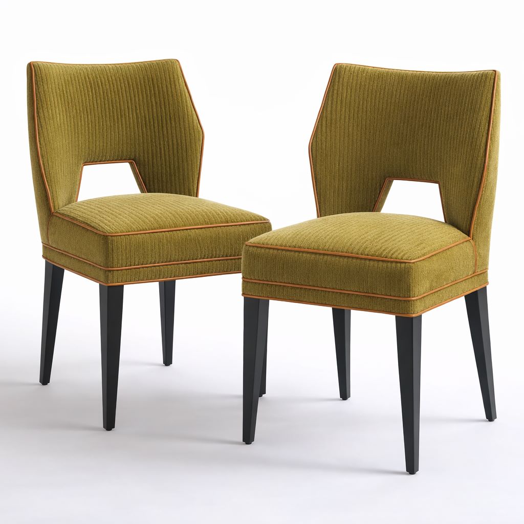 it is simple and sleek with a universal appeal and clean lines.The Jasper dining chair bespoke blends Schumacher Wyatt Corduroy upholstery with dark wenge beech wood for timeless & modern classic appeal.