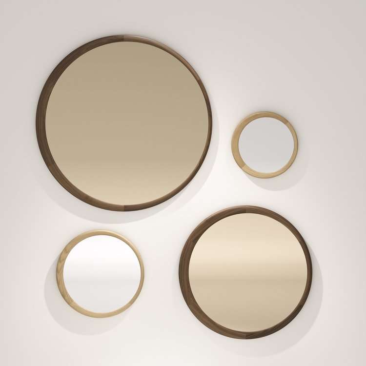 DESIGNER ELEONORA FEDI Mirror consists of four different sized mirrors . It is crafted in Oak and Walnut wooden frames.Luna mirror design is inspired by the beautiful and fascinating shape of the full and crescent moon.