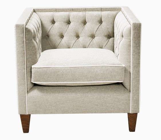 Salisbury lounge chair is crafted with a solid wood frame and dark tapered legs —perfect for all open spaces.