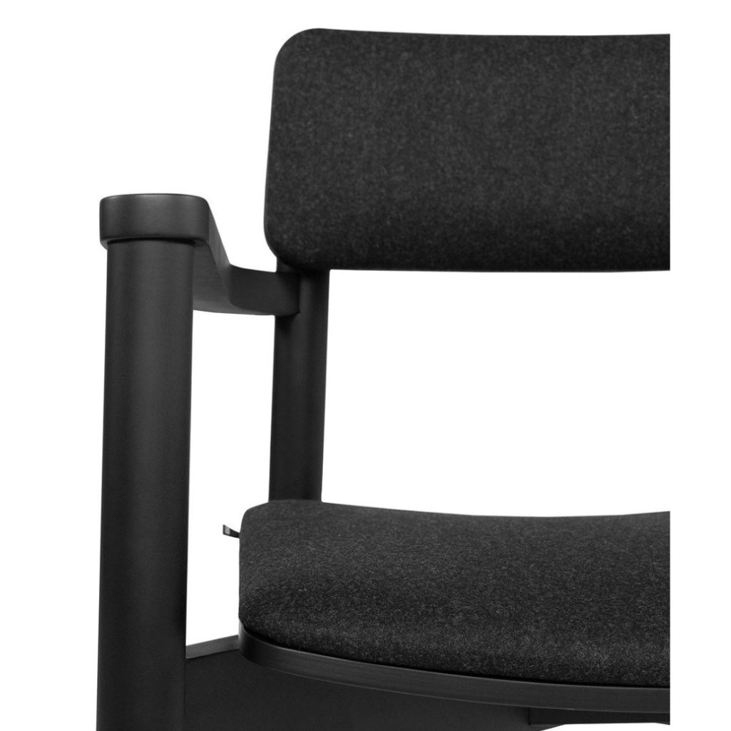 This mine upholstered armchair is crafted on a beech frame finished with a black stain.
