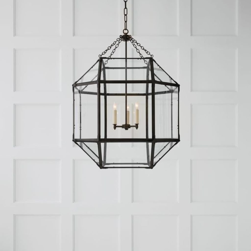 Morris Large Lantern a Kelly Wearstler lantern with elegant glass panels and refined metalwork.