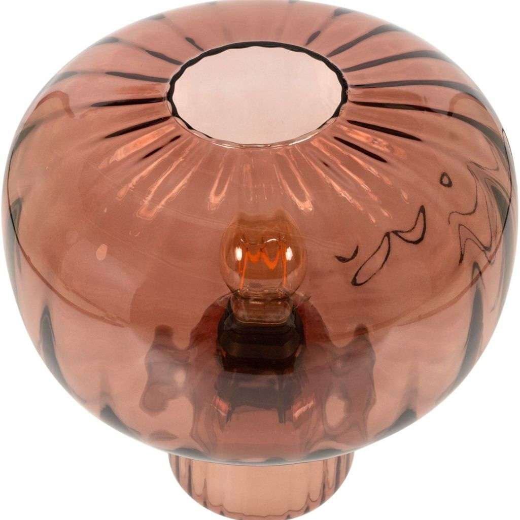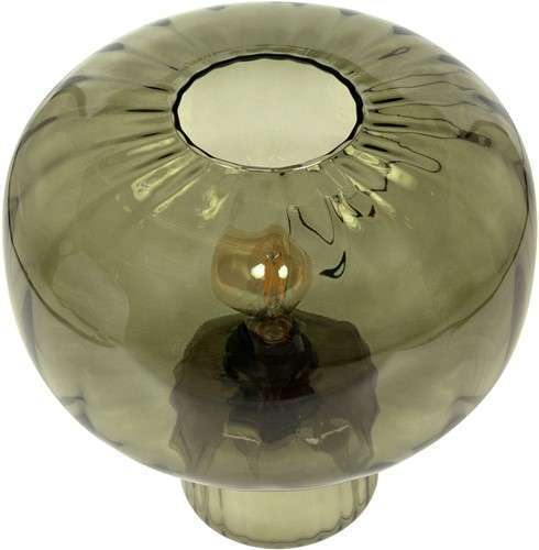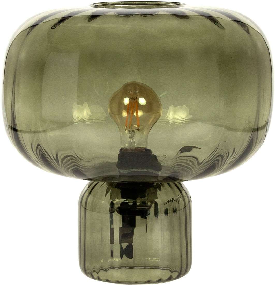Pumpkin table lamp in mouth blown glass, available in smoked green or marsala.