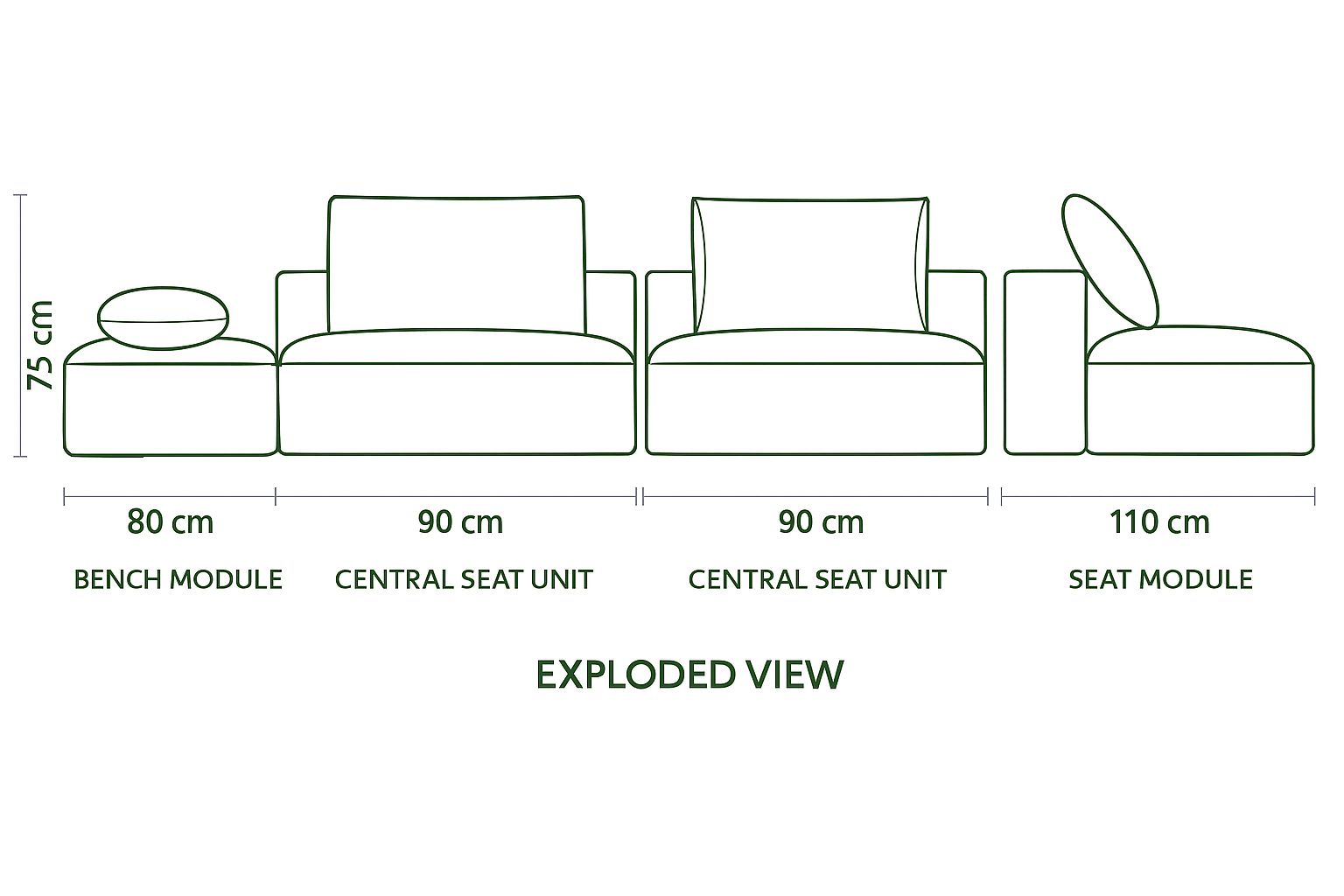 • Bench Module – 80 cm wide × 100 cm deep, armless with bolster