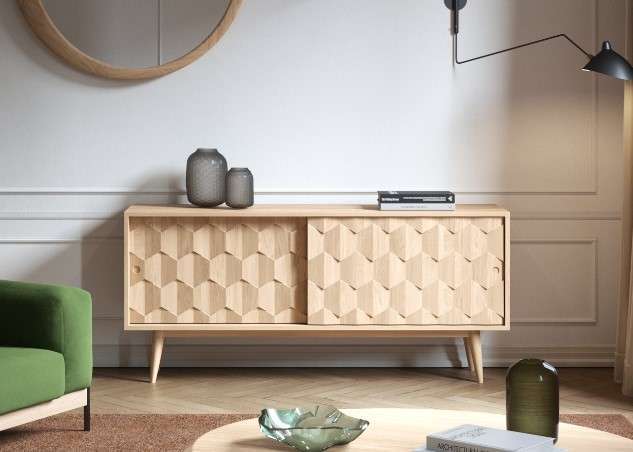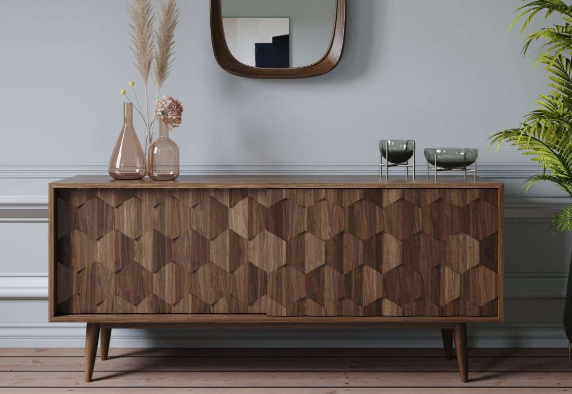 Discover the Scarpa sideboard, crafted in solid walnut or oak with statement joinery and a striking 3D door design, handmade in Portugal.