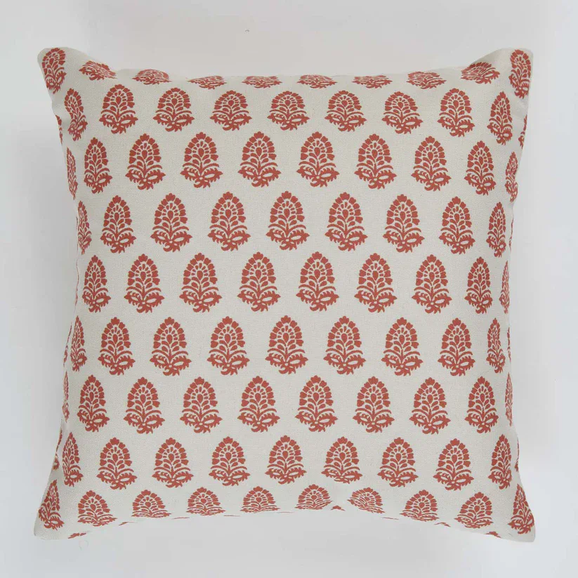 Stylish Acorn coral cushion in recycled plastic canvas. Stain and water-resistant, machine washable and perfect indoors or out.